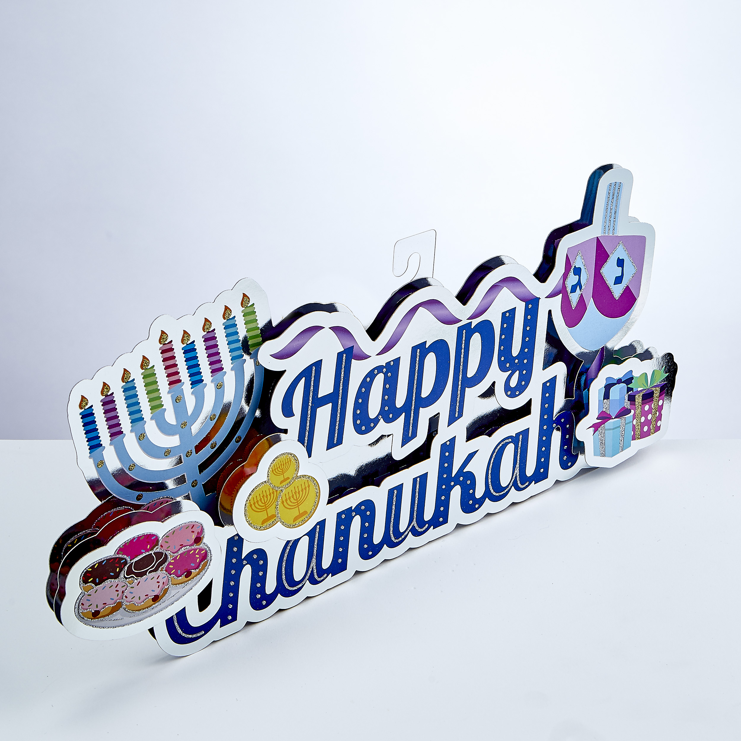 Declare "Happy Chanukah" with celebratory fun and happiness! Bursting with personality and bold colors, this decoration enhances the festive environment of Chanukah with vibes of positivity.
